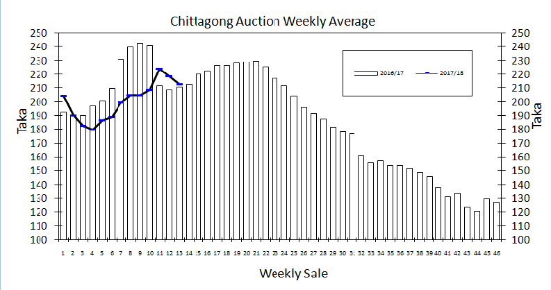Our catalogue (Sale 14) Avg: Tk 209.64, sold 78.0% & (Sale 13) Avg: Tk 215.23, sold 77.5%